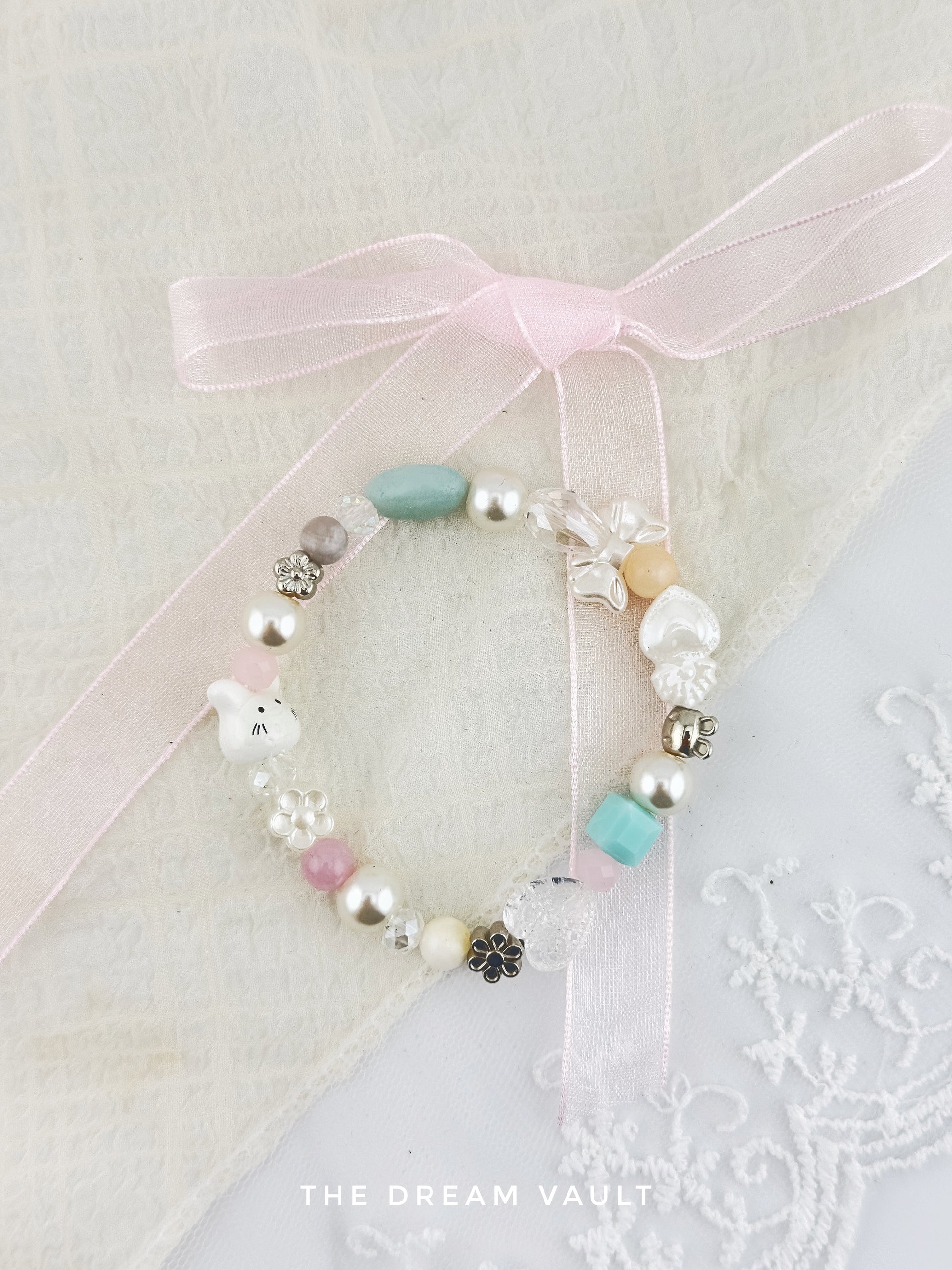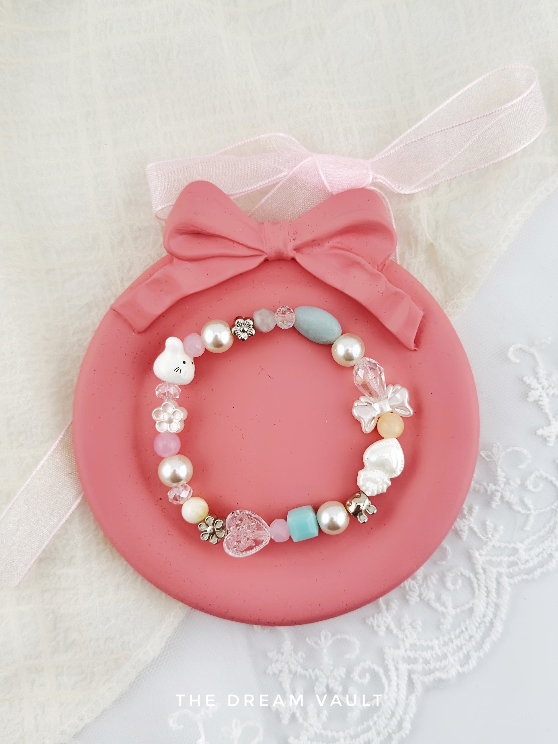 This playful bracelet combines the soothing energies of Amazonite, the loving vibes of Rose Quartz, and the intuitive glow of Moonstone, accented by an adorable bunny charm.