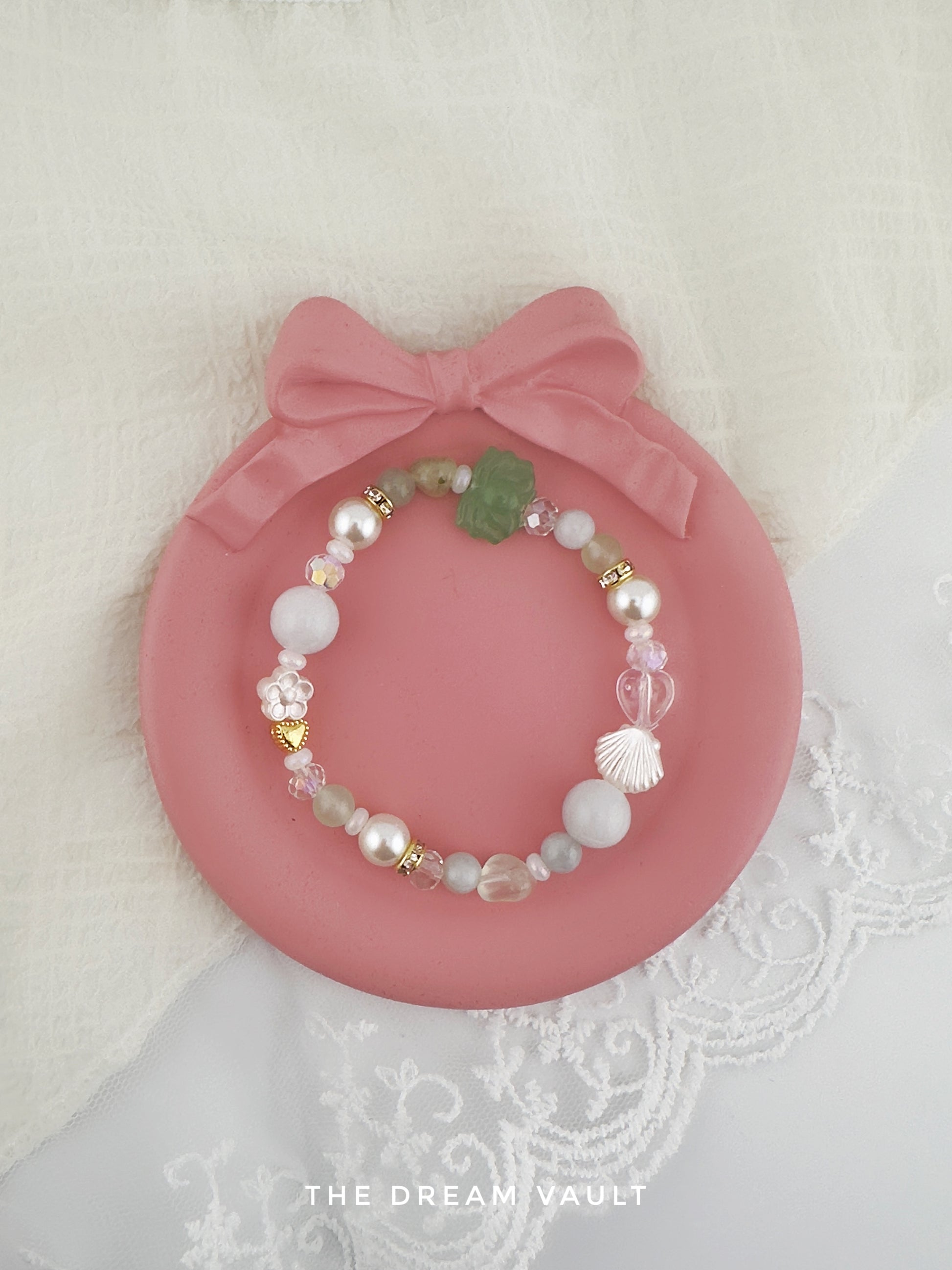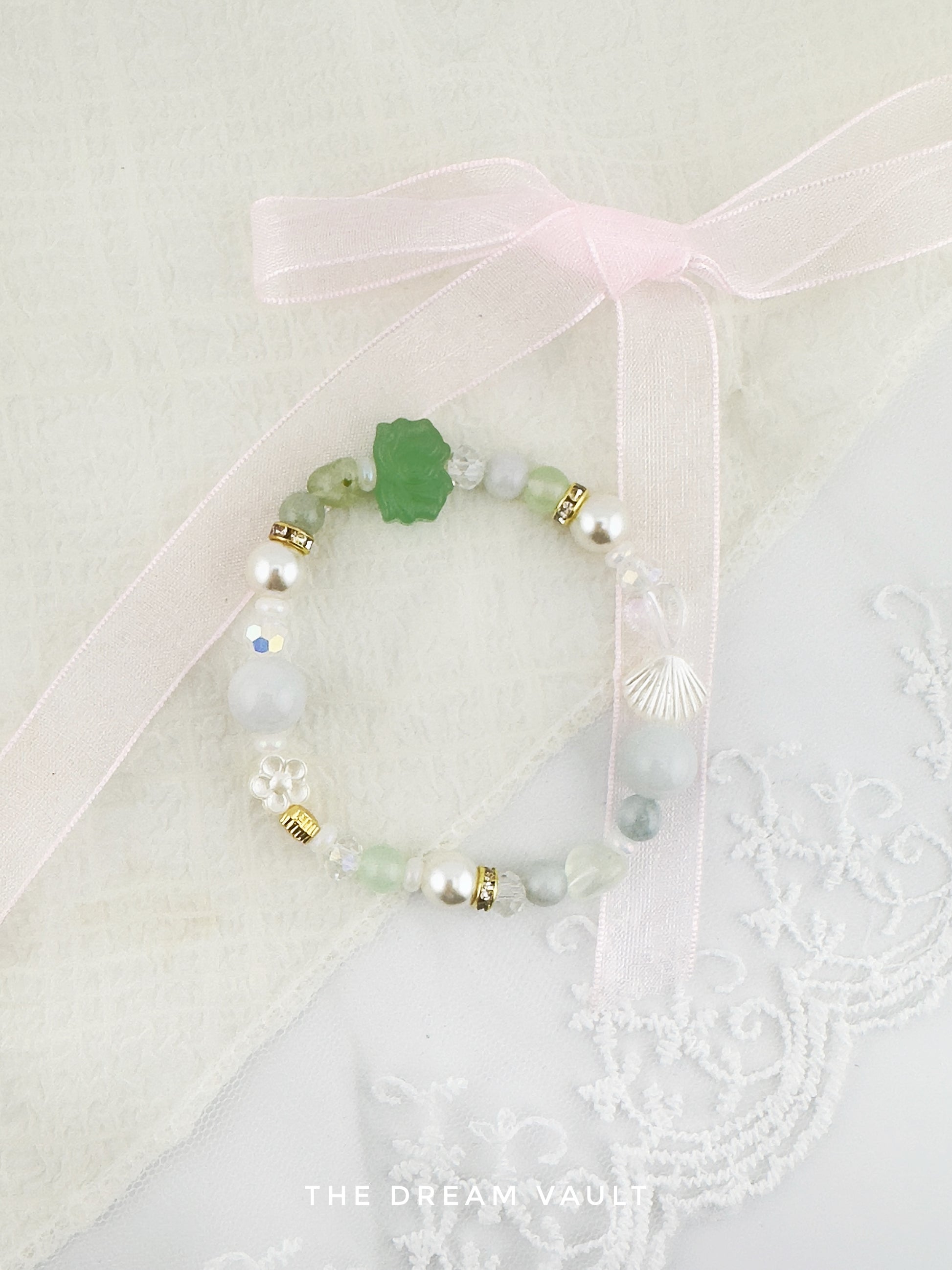 Accented with luminous pearls and subtle gold details, this bracelet offers a touch of natural elegance while carrying the gentle energies of these beneficial stones.